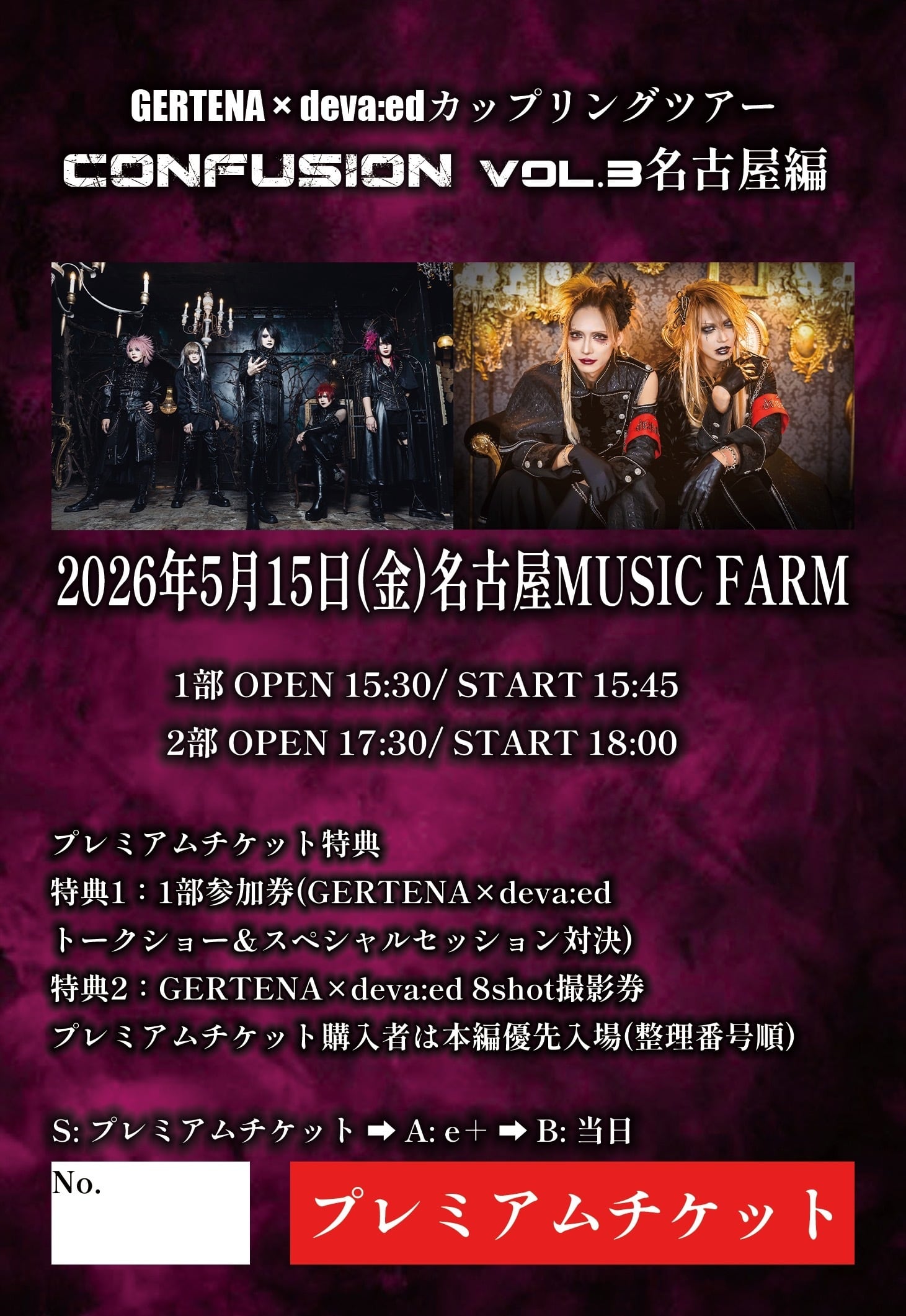 【プレチケ】2026年5月15日 GERTENA × deva:edカップリングツアー「CONFUSION Vol.3」名古屋編
